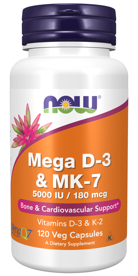 NOW® Mega D-3 & MK-7 combines vitamins D-3 and K-2,