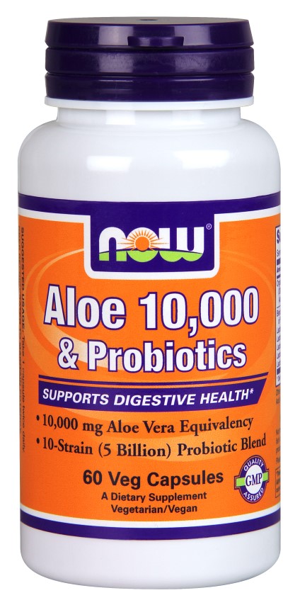 Now Foods Aloe 10,000 & Probiotics - 60 Veg Capsules
