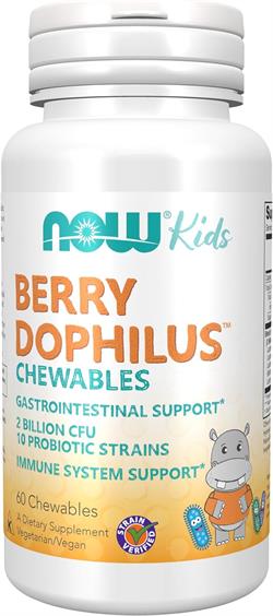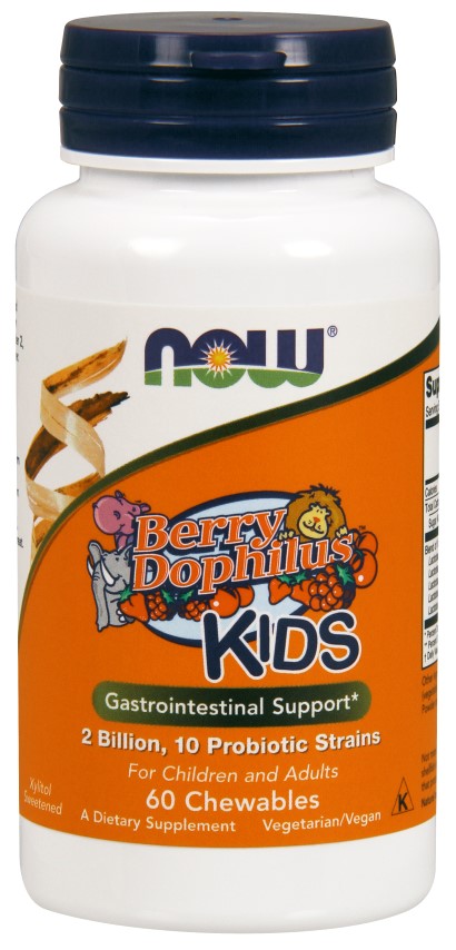 NOW- BerryDophilus is a combination of probiotic bacterial strains designed to support gastrointestinal health and immune system function. In addition, healthy intestinal flora also helps to create a favorable environment for the absorption of nutrients. FOS is included in this product to assist healthy growth of acidophilus and bifidus organisms. BerryDophilus can be used by both adults and children. Because it is sweetened with Xylitol, chewable BerryDophilus won't harm teeth and it tastes great.*