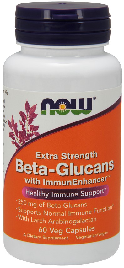 Beta-1,3/1,6 D-Glucan (Beta-Glucans) is a bioactive carbohydrate derived from the cell wall of Saccharomyces cerevisiae, commonly known as Bakers yeast. Scientific studies have shown that Beta-1,3/1,6 D-Glucan supports a healthy immune system through its ability to maintain and mudulate several aspects of immune function, including macrophage activity and immunoglobulin production. NOW- Xtra Strength Beta-Glucans also contains ImmunEnhancer, a proprietary extract of Larch Arabinogalactan. Larch Arabinogalactan is known to aid in the support of healthy NK Cell activity in response to environmental stressors. This exceptional combination of immune supporting ingredients helps to fortify a healthy immune response seasonally and throughout the year.