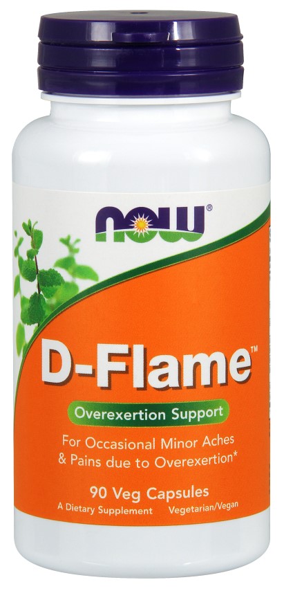 NOW- D-Flame is a synergistic blend of herbs that can reduce the occasional minor pain resulting from over-exertion or stress. Therefore, D-Flame is an all natural product that can be part of a nutritional program for pain management. In addition, NOW- D-Flame contains a potent combination of antioxidants that contribute to heart health and proper immune function. NOW- D-Flame can be used daily for the support of vascular and general health, or occasionally to alleviate aches and pains associated with daily life.*