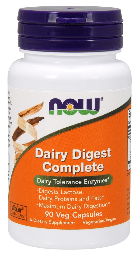 NOW- Dairy Digest Complete is a comprehensive blend of enzymes that is formulated to aid in the digestion of dairy products. Intolerance to dairy is often due to the inability to digest milk sugar known as lactose. However, intolerance is also frequently related to the difficult-to-digest proteins and fats inherent in dairy products. NOW- Dairy Digest Complete contains not only lactase for lactose digestion, but also proteases and lipases that specifically target milk poteins and fat for digestion. With Dairy Digest Complete, it is possible to ease temporary discomfort associated with the incomplete digestion of dairy products, while enjoying the taste and health benefits of them as well.*
