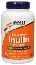 NOW- Organic Inulin is a fructooligosaccharide derived from Jerusalem Artichoke. As a prebiotic, Inulin stimulates the growth of friendly and healthy intestinal bacteria which supports good colon health.* Since it also has a very low glycemic index, it is suitable for many people who are on restricted diets. Add it to your favorite beverage or food. Its taste is comparable to sugar and can be used as a sugar replacer.