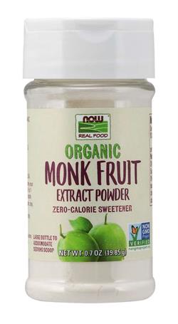 Monk fruit, also known as Luo Han Guo, is our newest zero-calorie sweetener. Monk fruit is significantly sweeter than sugar, up to 200 times as sweet and is a fantastic alternative to sugar in beverages. NOW Real Food® Organic Monk Fruit Extract Powder has a delightfully vibrant, sweet taste with very little aftertaste.