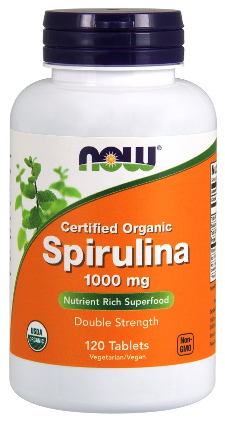 Ingredient: Organic Spirulina (Non-GMO). NOW Spirulina delivers the natural nutrient profile found in Genuine Whole Foods. Not manufactured with yeast, wheat, gluten, soy, milk, egg, fish, shellfish or tree nut ingredients. Produced in a GMP facility that processes other ingredients containing these allergens. This double strength product has twice the Spirulina (1,000 mg per tablet) as in our regular strength product (500 mg per tablet). This natural product may have variationis in color and odor. Do Not Eat Freshness Packet. Keep in Bottle. Certified Organic by QAI Organic and Non-Irradiated. Pesticide & Herbicide Free. Certified Vegetarian by Naturland Association. 1,000 mg Spirulina per tablet. 3,000 mg Spirulina per 3 tablet serving. Store in a cool, dry place after opening. Please Recycle.