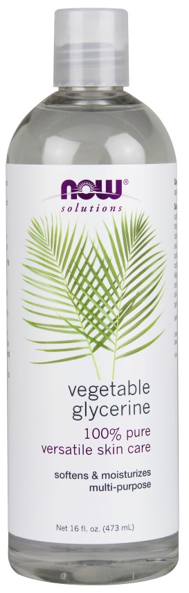Suggested Usage: NOW- Vegetable Glycerine is a USP and food grade, all natural product derived from vegetable oil. Vegetable Glycerine moisturizes and cleanses skin, has emollient (softening) and lubricating properties. For soft, moisturized skin, simply massage a few drops of NOW- Vegetable Glycerine on desired areas, as needed. Discontinue use if redness or irritation occurs.